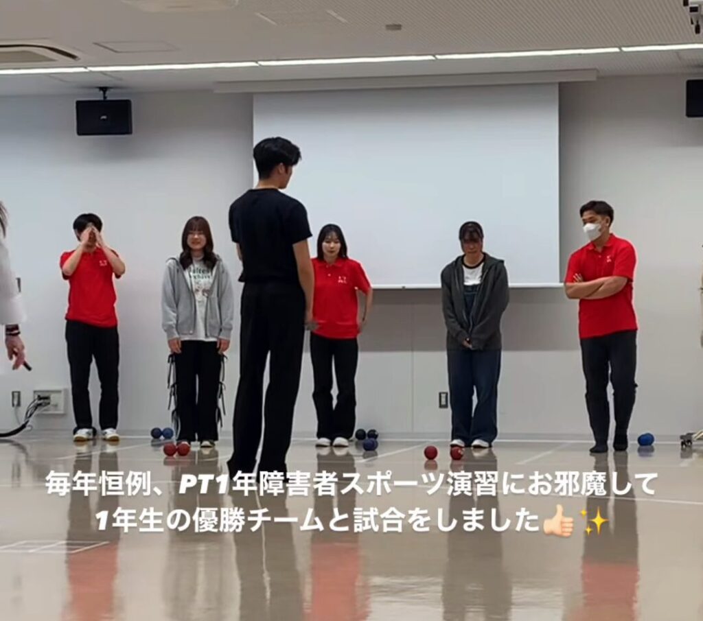 杏林大学 保健学部 リハビリテーション学科 理学療法学専攻 「障害者スポーツ演習」の授業に突撃訪問しました! Boccia 2025.05.02 2025年4月30日(水)2限、杏林大学 保健学部 リハビリテーション学科 理学療法学専攻 「障害者スポーツ演習」の授業に突撃訪問しました!この日の授業内容はパラスポーツの「ボッチャ」!理学療法学専攻1年生全員でトーナメント戦を行いました!初めてボールに触れたとは思えないほどナイスショットの連発でした!みんなボッチャ部に入部してね~大阪にも遊びに来てね~